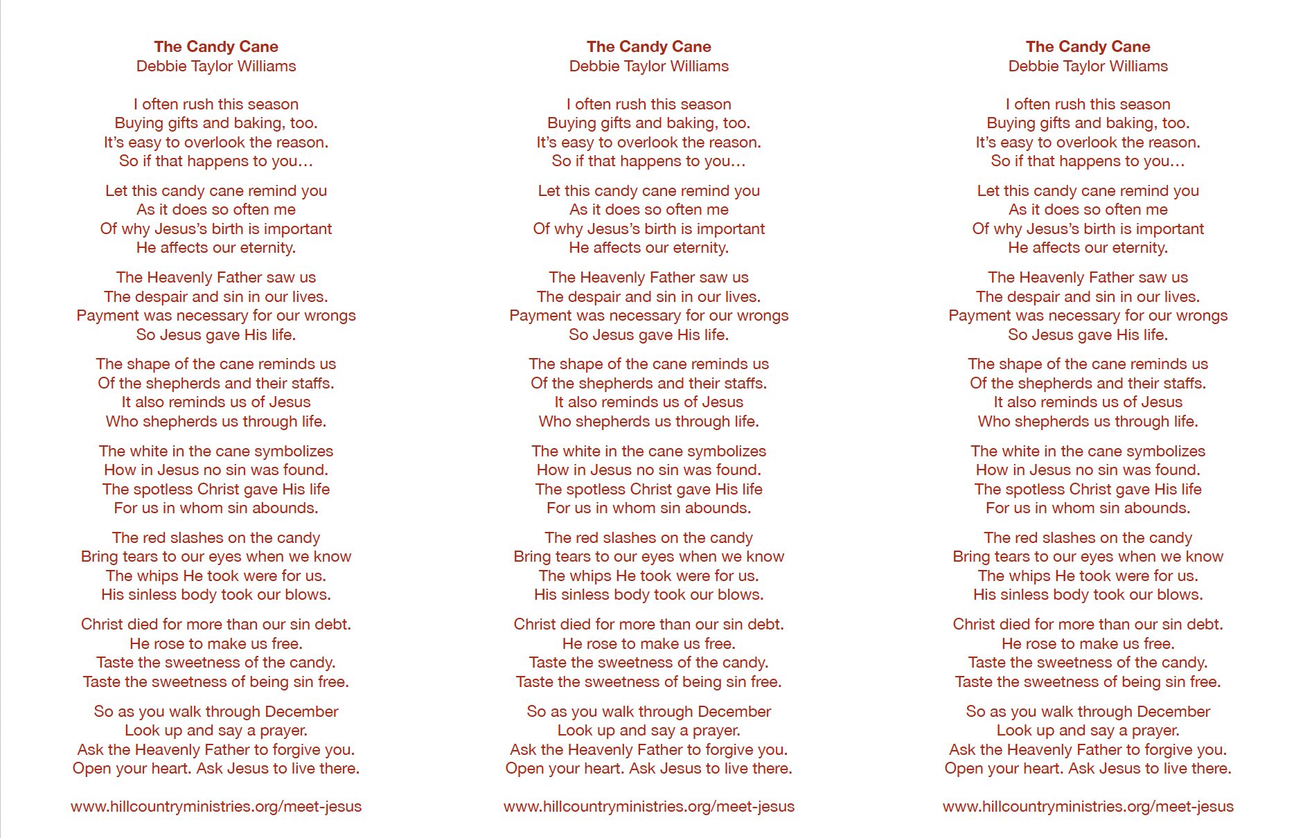 Click below to download a free printable of Debbie’s Candy Cane Poem.